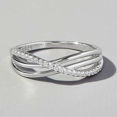 Crisscross Inlaid Zircon 925 Sterling Silver Ring