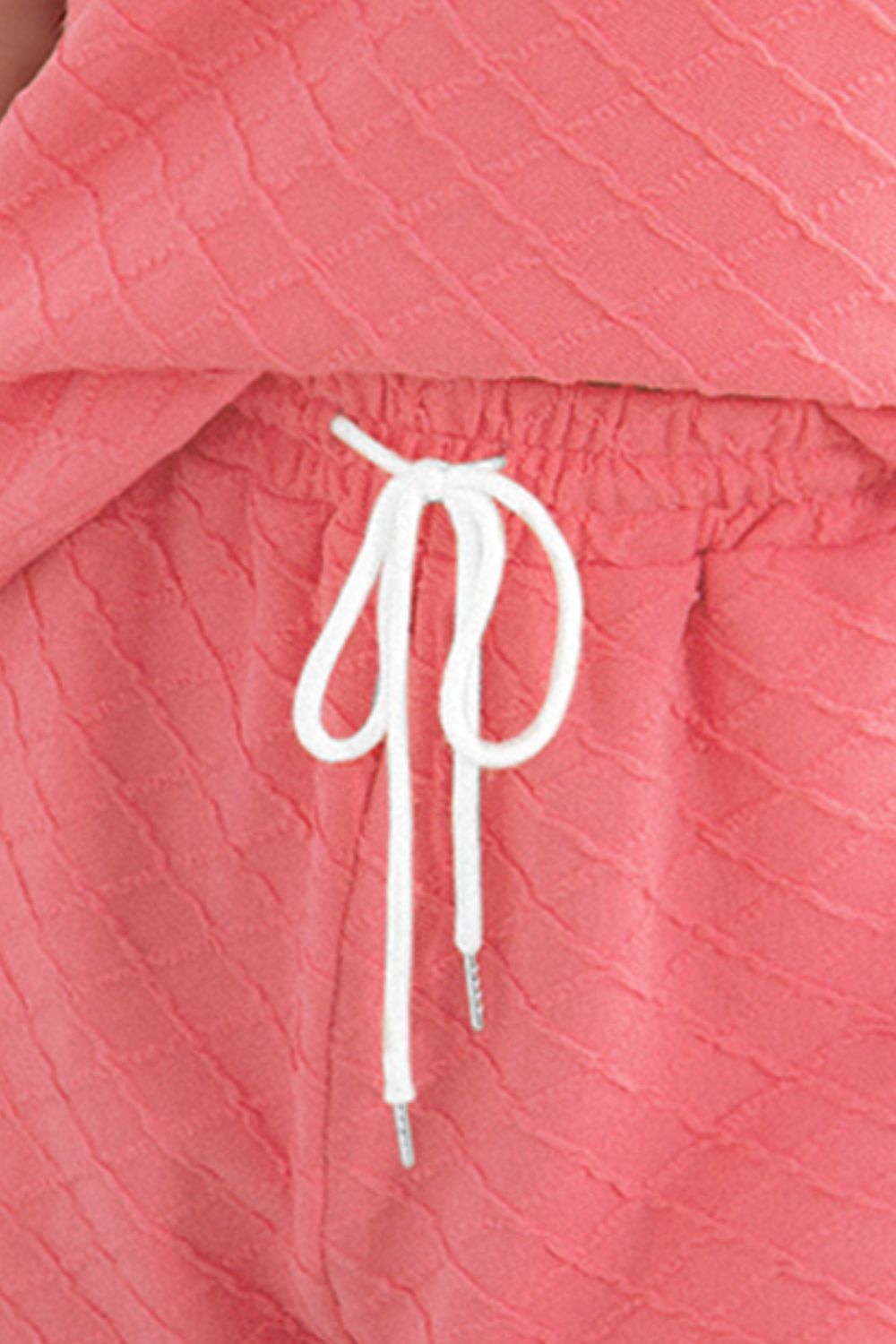 Round Neck Short Sleeve Top and Drawstring Shorts Set