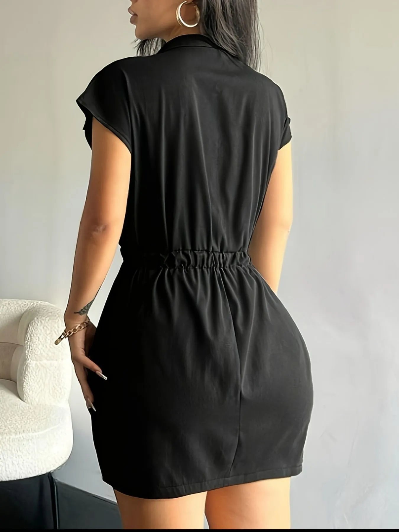 Zipper Front Short Sleeve Mini Dress